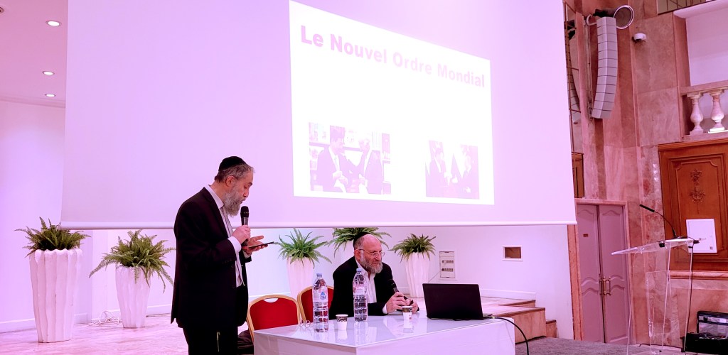 Dov Maimon et le Rav Lemel, conférence : « Le Nouvel ordre mondial », en mars 2024.