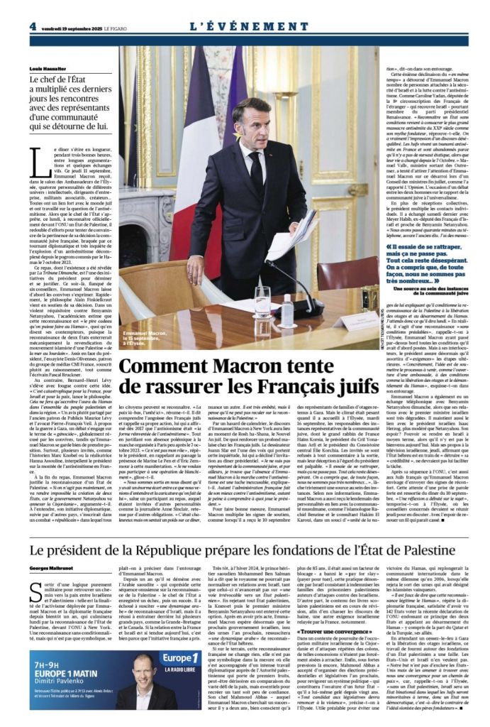 « C’est mettre une cible dans notre dos » : le grand malaise des juifs devant la reconnaissance de la Palestine, Le Figaro, analyse de Didier Long